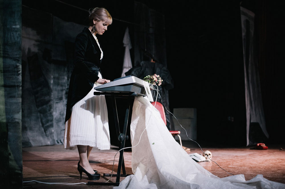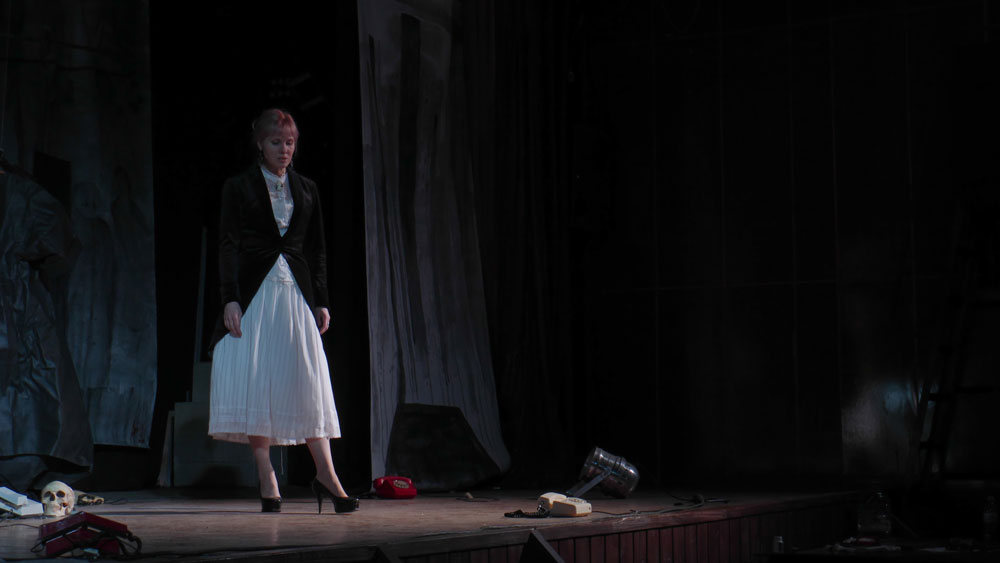 Удивительно, как атмосферно смотрится в таких условиях маленькая трагедия не главного героя большой пьесы. Раздаётся телефонный звонок, Офелия берёт трубку, но присутствующее среди декораций ружьё уже выстрелило, и поздно звать Гамлета. Те немногие зрители, что находятся в пустом зале, лишь души на замершей среди пустоты лодке Харона, почему-то допущенные подсмотреть чужую историю. Скоро весло коснётся воды, и всё пропадёт в тумане.